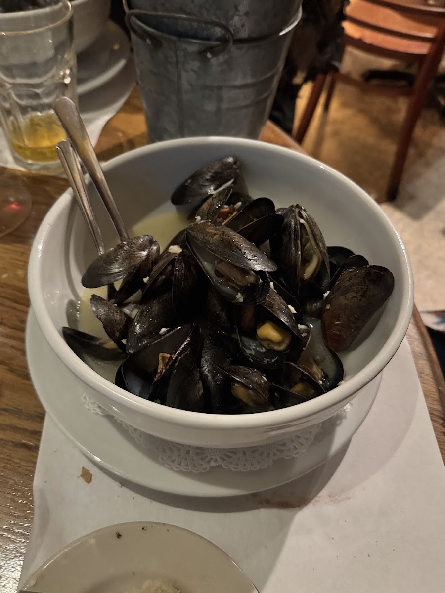 The lamb shank was phenomenaaaal; absolutely delicious and the meat was so tender it was falling off the bone. The lentils that came with it were amazing. The mussels and French onion soup were so good. I’d def come back for these. Service was good. The steak frites were just alright. Wine was fine.
